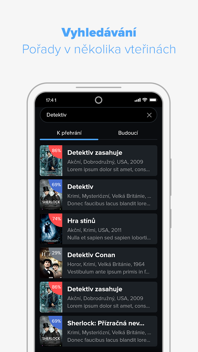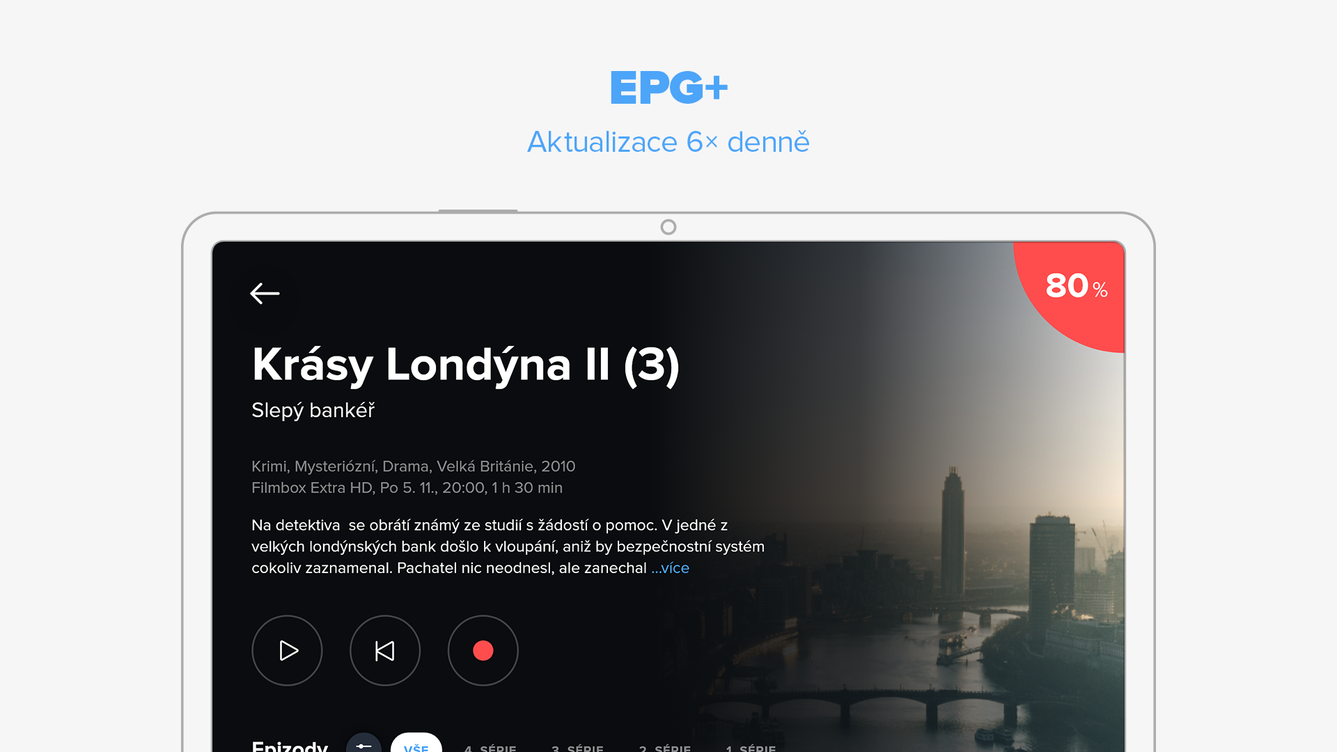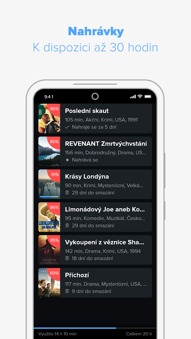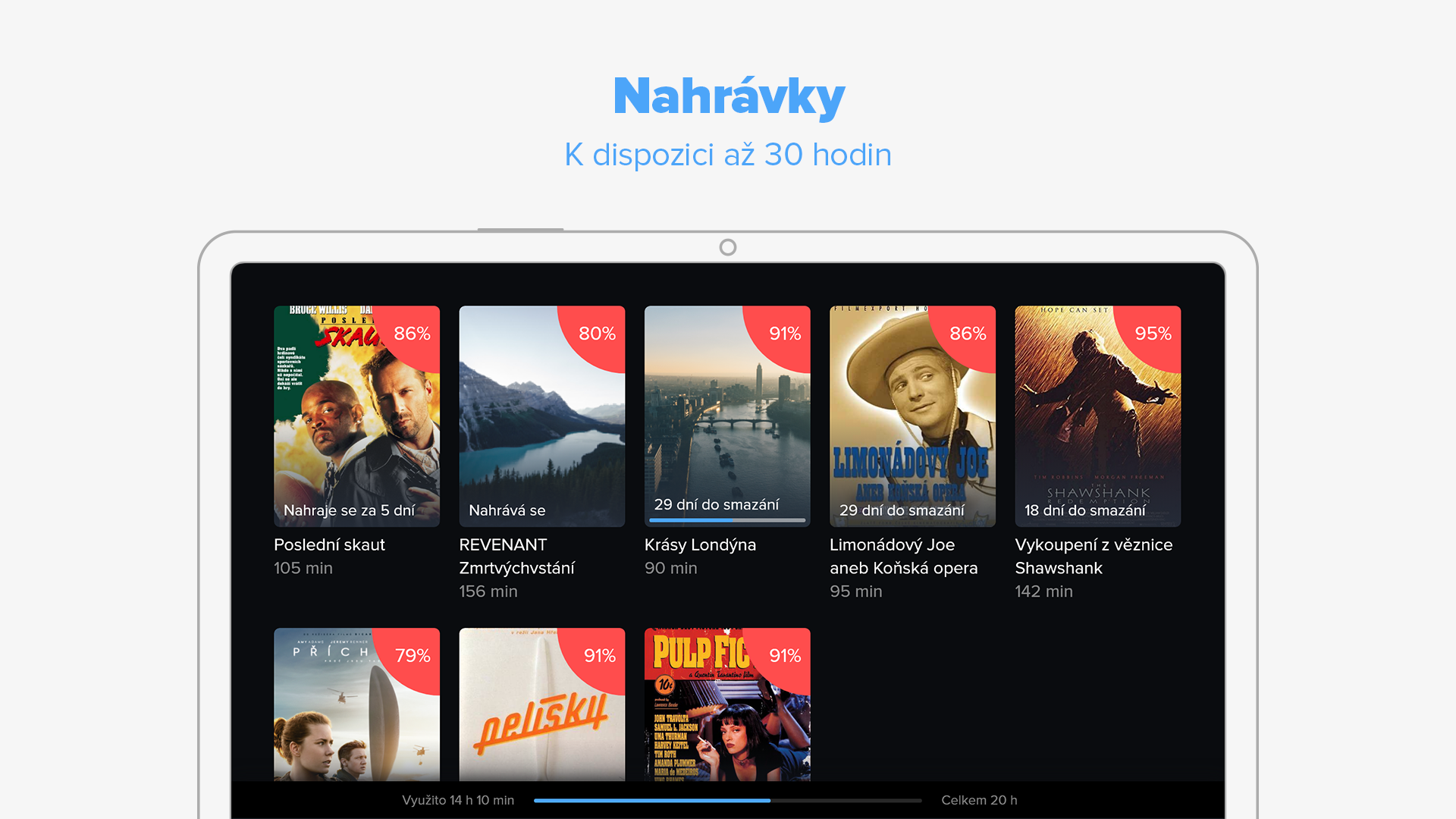 Zpětné přehrávání 7 dní, osobní nahrávky na 30 dní, přetáčení reklam a chytré vyhledávání